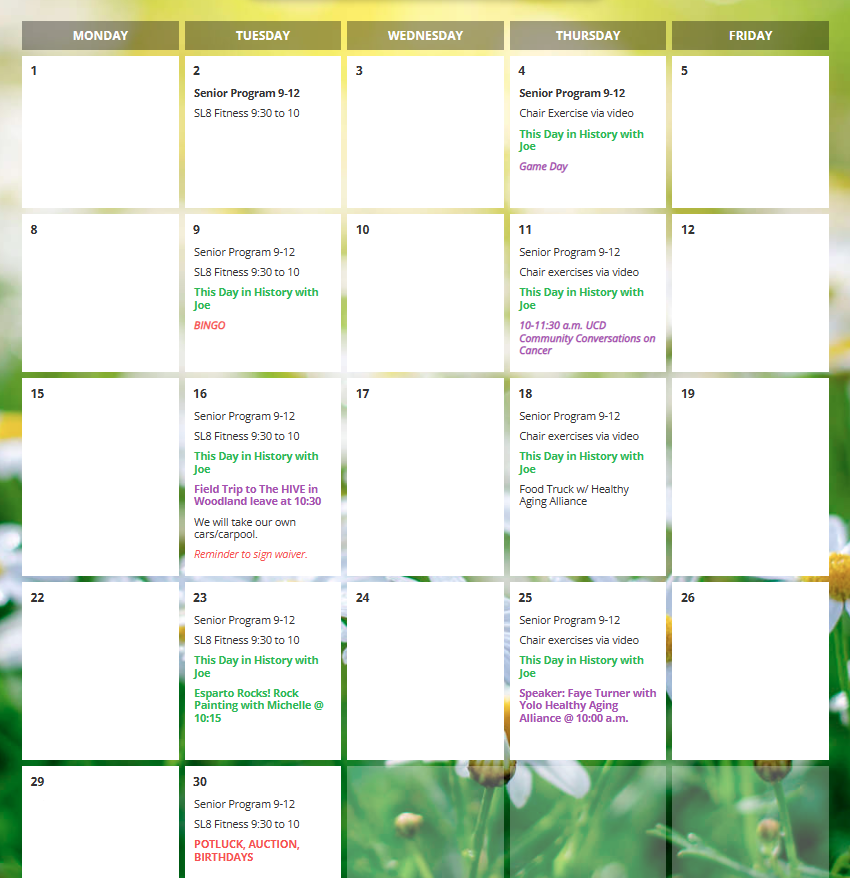 Valley Seniors offers a fun filled program for senior citizens in Esparto & the surrounding communities.